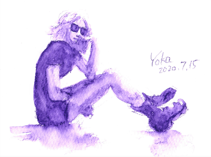水彩色鉛筆・単色で描く習作「サングラスの女性」 ステッドラーのカラトアクェレル、色はバイオレット(6)で描いています。 動画 → youtu.be/qc6VjjBO5bk #水彩色鉛筆 #水彩画