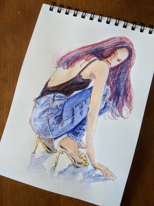水彩色鉛筆描く習作「椅子に座っている女性」 ステッドラーのカラトアクェレルで描いています。 使用した色は バーントシェンナ(73) ウォームセピア(77) インディコ(36) タスカンレッド(260) バイオレット(6) メイキング動画 → youtu.be/1eGaYuZgdTQ #水彩色鉛筆 #水彩画