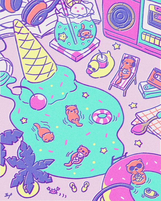 ラッコバケーション🦦🌴🎧 #イラスト #illustration