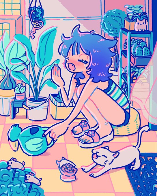 大好きmanikoさんにバトンも〜らい! ありがとうございます🥳💕 猫×女の子の絵まとめにします🐈 女の子の目全員つむってるね😌 twitter.com/ume_kakip/stat…