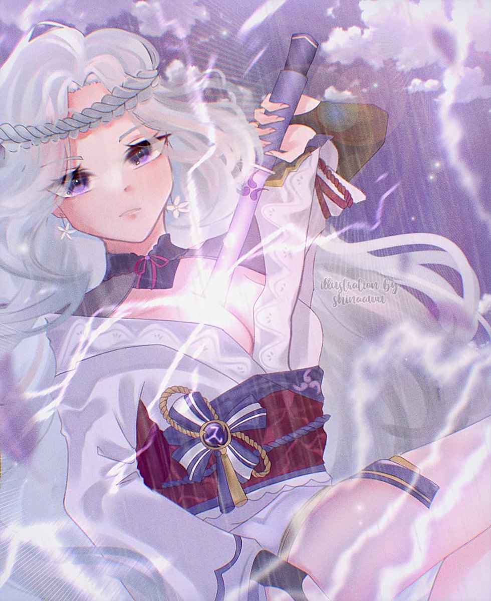 art trade w/ @raychi0416 her oc using raiden shogun's clothes (●♡∀♡) #GenshinImpact #anime #Baal #genshinimpactfanart #Genshin_Impact #Genshin_Impact #art #ArtistOnTwitter #Raiden_Shogun #beel #Inazuma