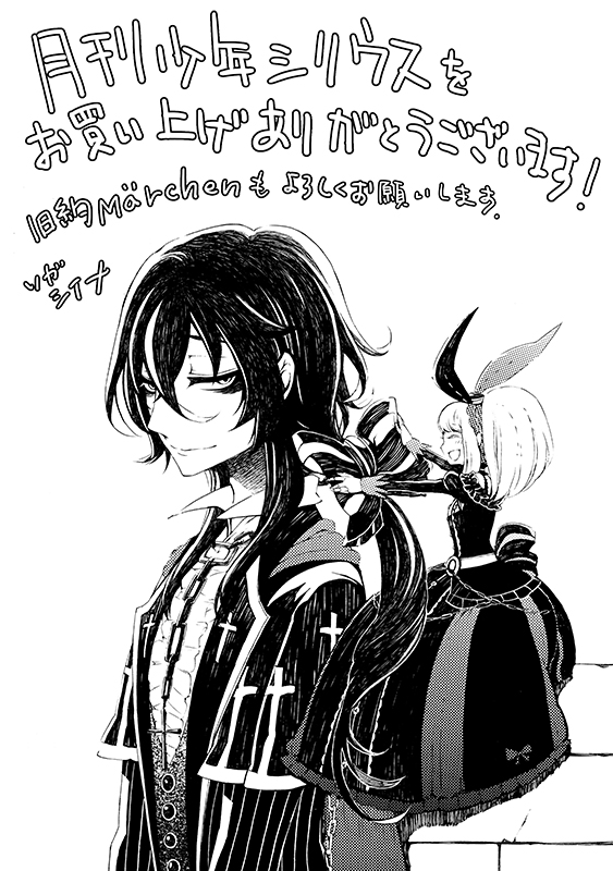 【ひつじの日記】またシリウス次刊予告にて発表がありましたが。来月3/25(土)発売の月刊少年シリウス5月号にて『旧約Märchen』の連載が再開いたします! 5月号に「暁光の唄」掲載予定です。どうぞよろしくお願いします! blog.livedoor.jp/pos2006/archiv…