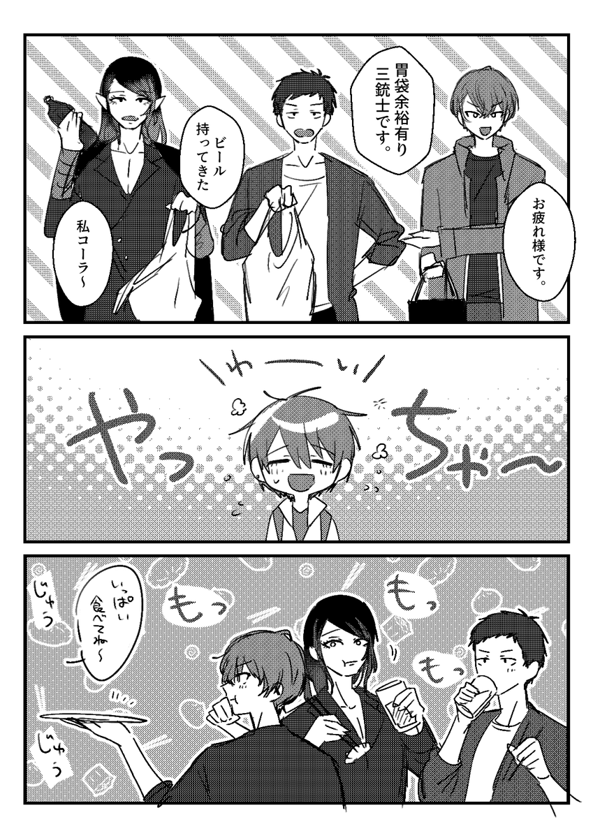 アララン『餃子もぐもぐ三銃士を連れてきたよ!』