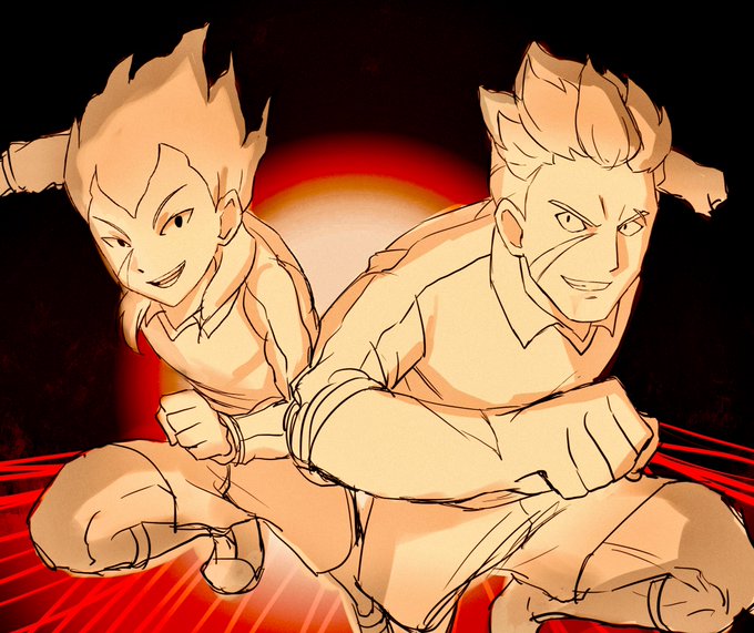 13 40 #イナイレいつでも真剣お絵描き60分一本勝負 お題:推しのコンビorトリオ +20分 大和と護巻! 21/11/03 01:36