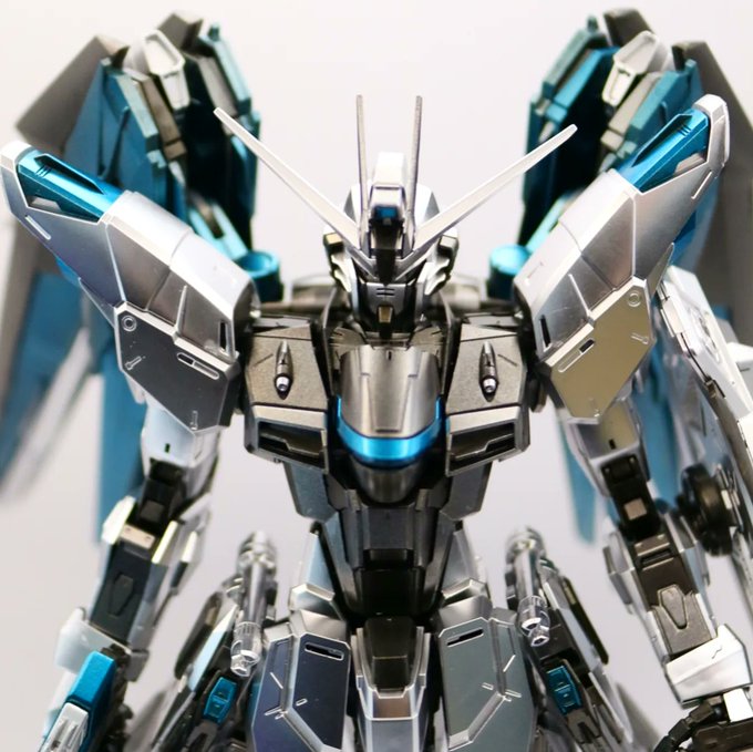 MGフリーダムガンダム ver.2.0シルバーコーティング 完成🎉 もともとメッキのやつでしょ?って思うかもしれないけど青色+3色で塗り分けてます💦 パッと見似たような成型色だったから配色かなりの期間悩みました😅 もう何日か撮影楽しみたいと思います😊 #ガンダムseed #ガンプラ好きと繋がりたい