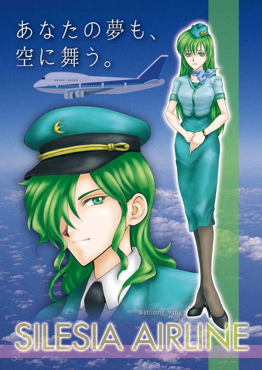 #レヴィフュリ強化週間 「シレジア航空イメージポスター」 過去イラストより。 もともと「現代の仕事」というお題のワンドロで描いていた構図を思いのほか気に入ったので、同じ構図で描き直した経緯がある。 pixivはこちらpixiv.net/artworks/69104…