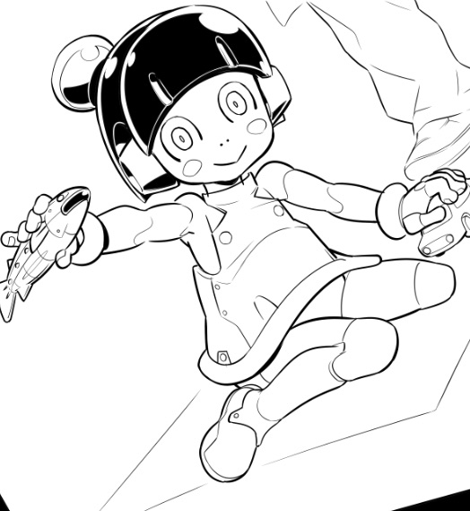 正式な告知はもう少しだけ先になりますが、新作連載まんが現在鋭意制作中です。 画像は、防塵シーリング加工を施された屋外活動仕様の主人公です。(トーン貼る前)