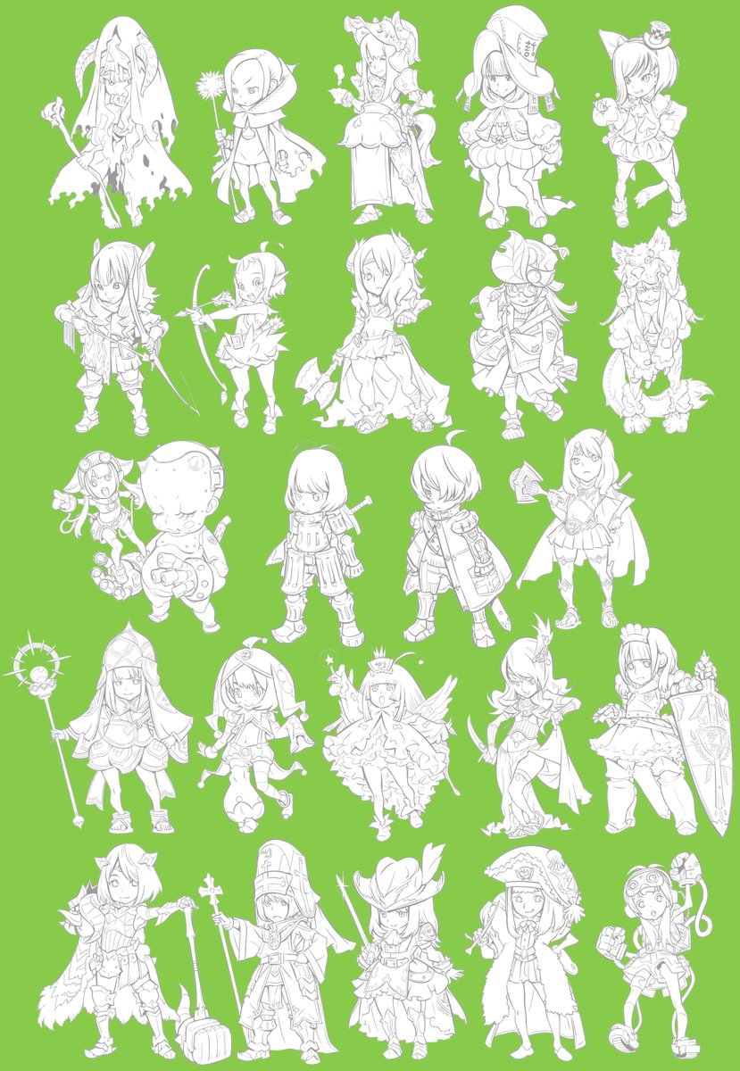 32 91 たぶん仕事として最後のヒメカ関連の絵を描いています(リク絵)(ヒメカか?) この後ちょっとパーツ足して色塗りだけど先に線画だけup 20/11/14 20:25