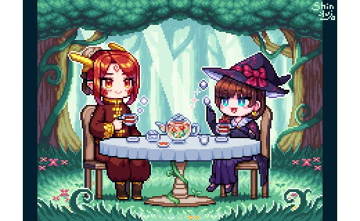 森のお茶会🌸 #ドット絵 #pixelart