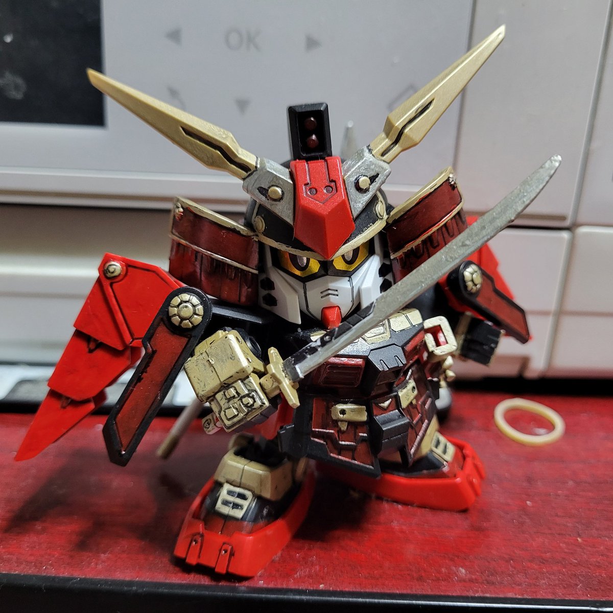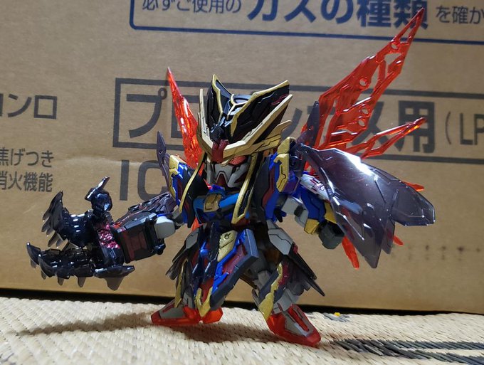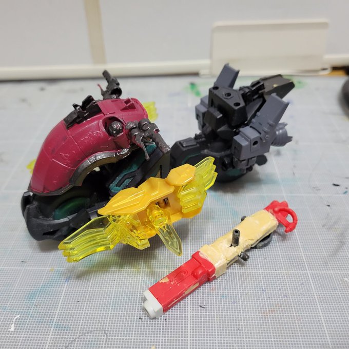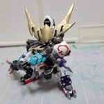 #ガンプラ #今月作ったプラモ晒そうぜ 作り途中で本体のカラーリングどうしようか検討中の専用バイク 武者バルバトス以外にビルドシリーズのレギュラーキャラが使うSDってイメージで作った武者三日月丸 嬉しくて30分くらいブンドドしてます…😅