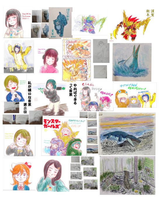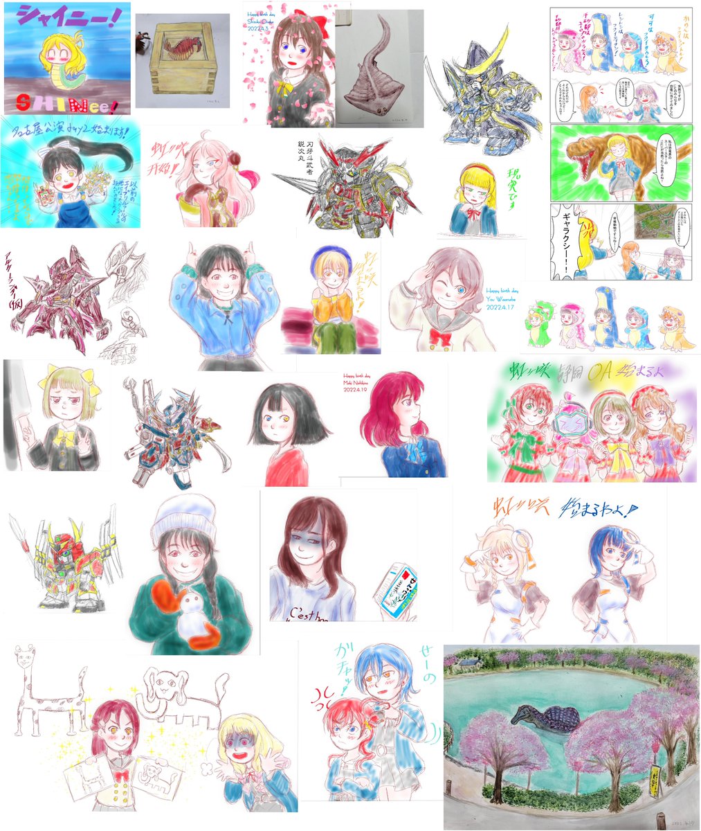 #今月描いた絵を晒そう しばらくはいつもの感じで花丸描けないかも・・・ ヒーローズ系はどうしても描きたい場合は線減らすアレンジしようかな せっかくいい本手に入れたのに古生物絵描く頻度が減ってきたな・・・