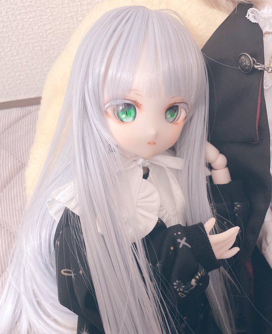 写真撮り直したので😌 新しい子がやってきました!27番ヘッドちゃん!白まつ毛が可愛いです🥰 ウィッグは多屋来夢さんのショップから!手触りが良い👏 #たてごとアイ #MDDはいいぞ #ドールオーナーさんと繋がりたい