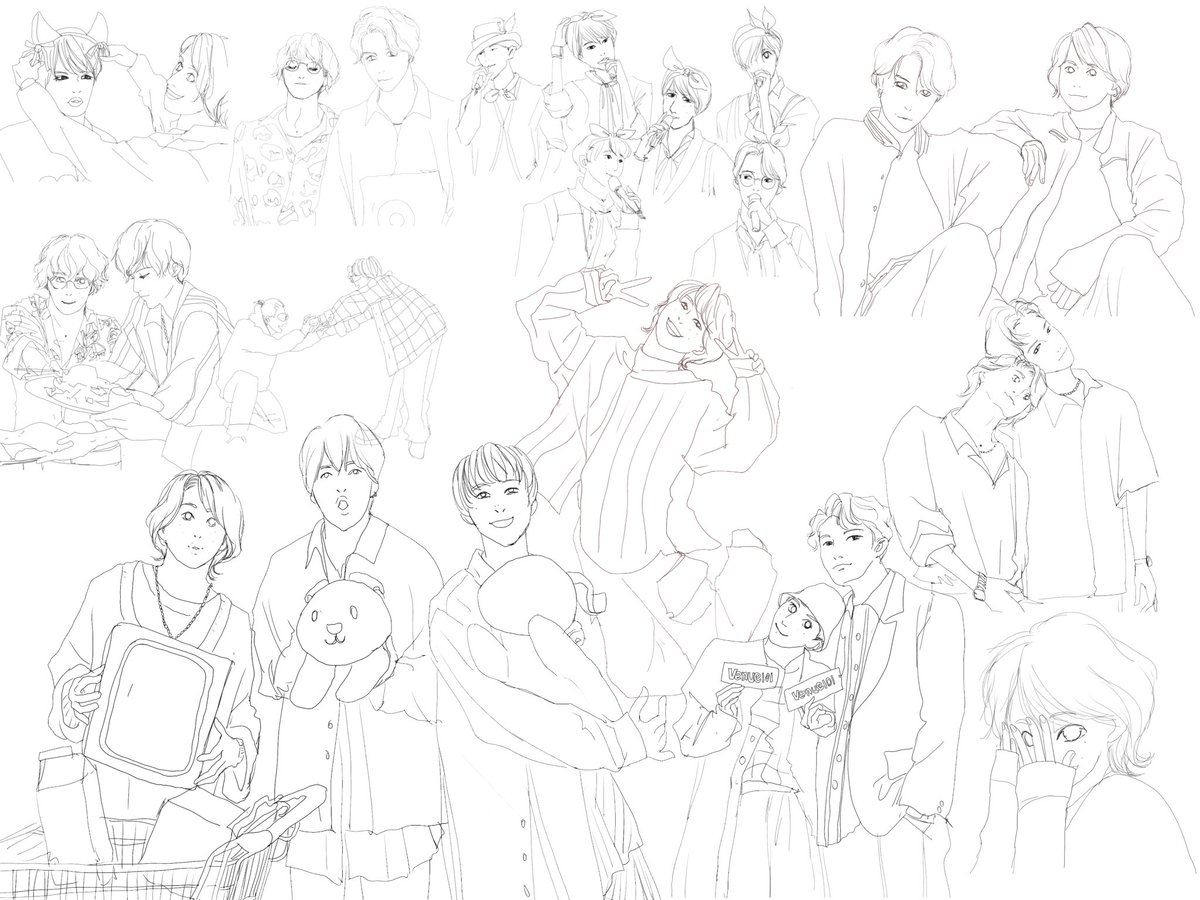 #今月描いた絵を晒そう お正月だったねー!と今更思う 記念日もあり、嬉しいお知らせもあり・・✨⛄ あとなんとなく描いたやつもあり(今後色塗るやつも込みで)チョイス! Snow Manのなかにそっときょももあり!