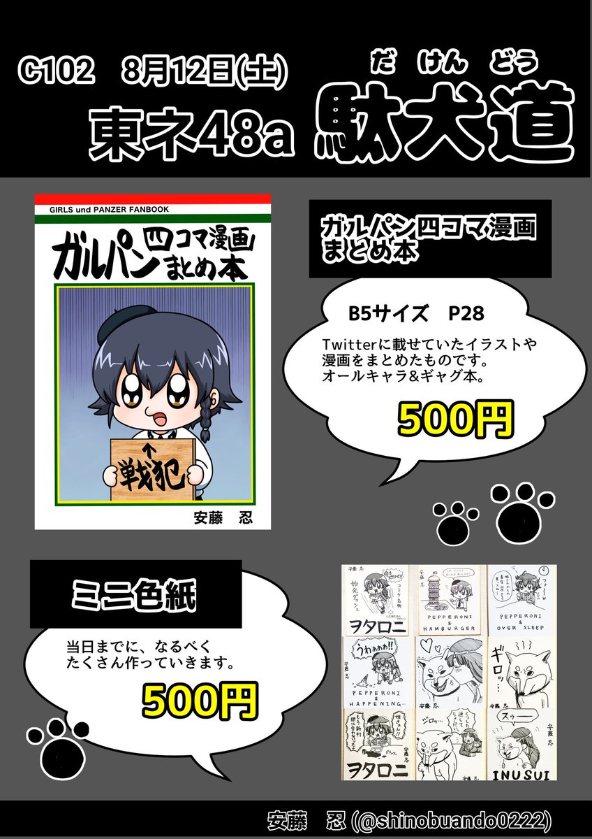 コミケ102 東ネ48aです! 『ガルパン四コマ漫画まとめ本』 『ミニ色紙』 よろしくお願い致します!