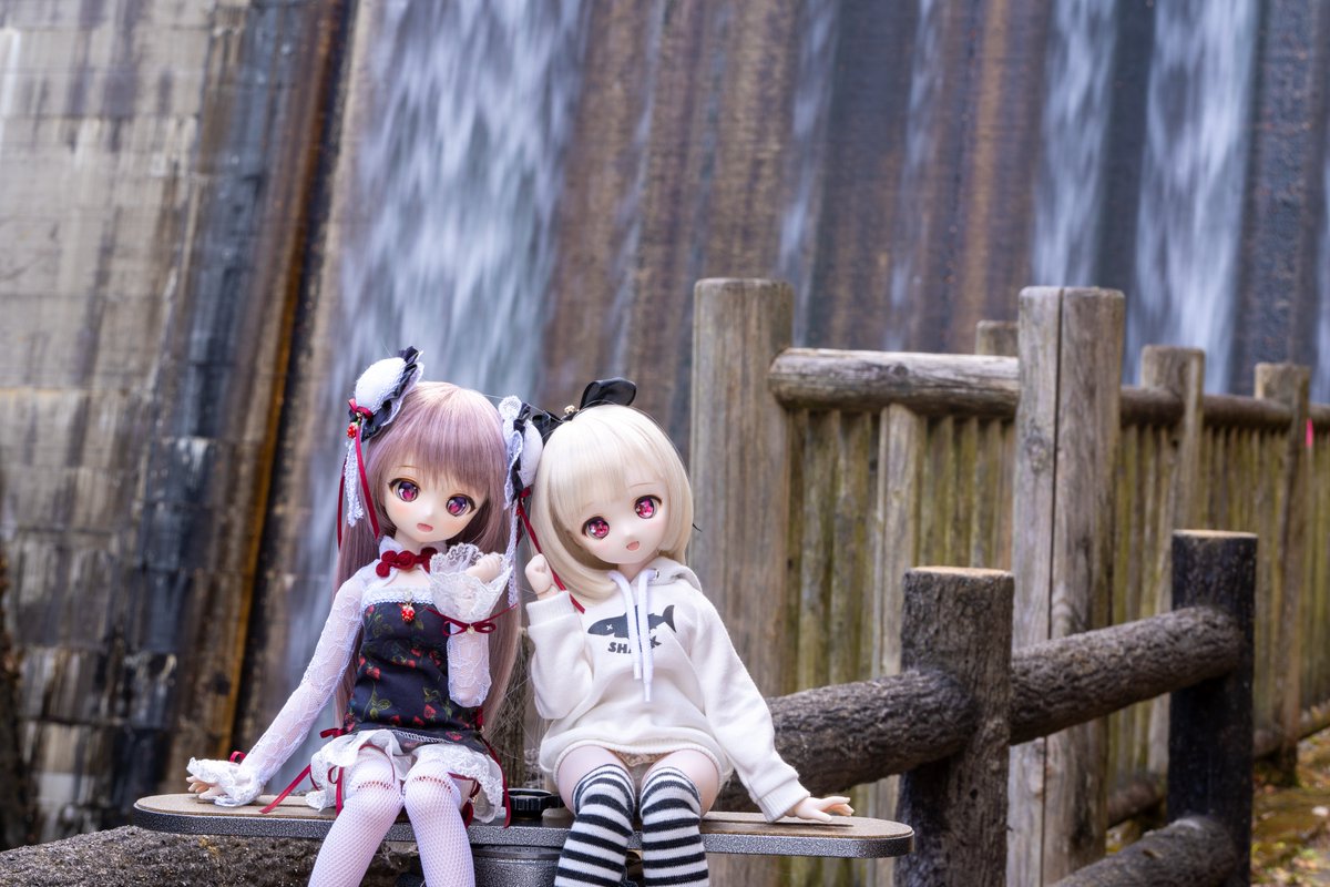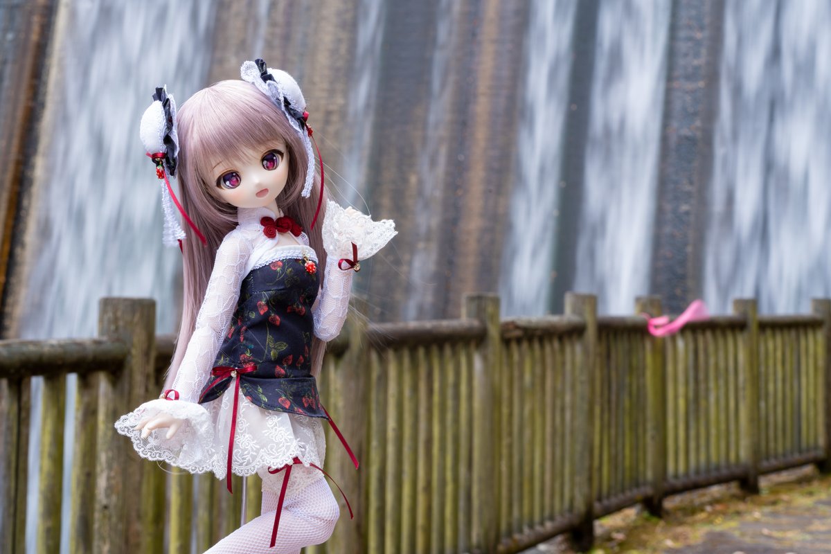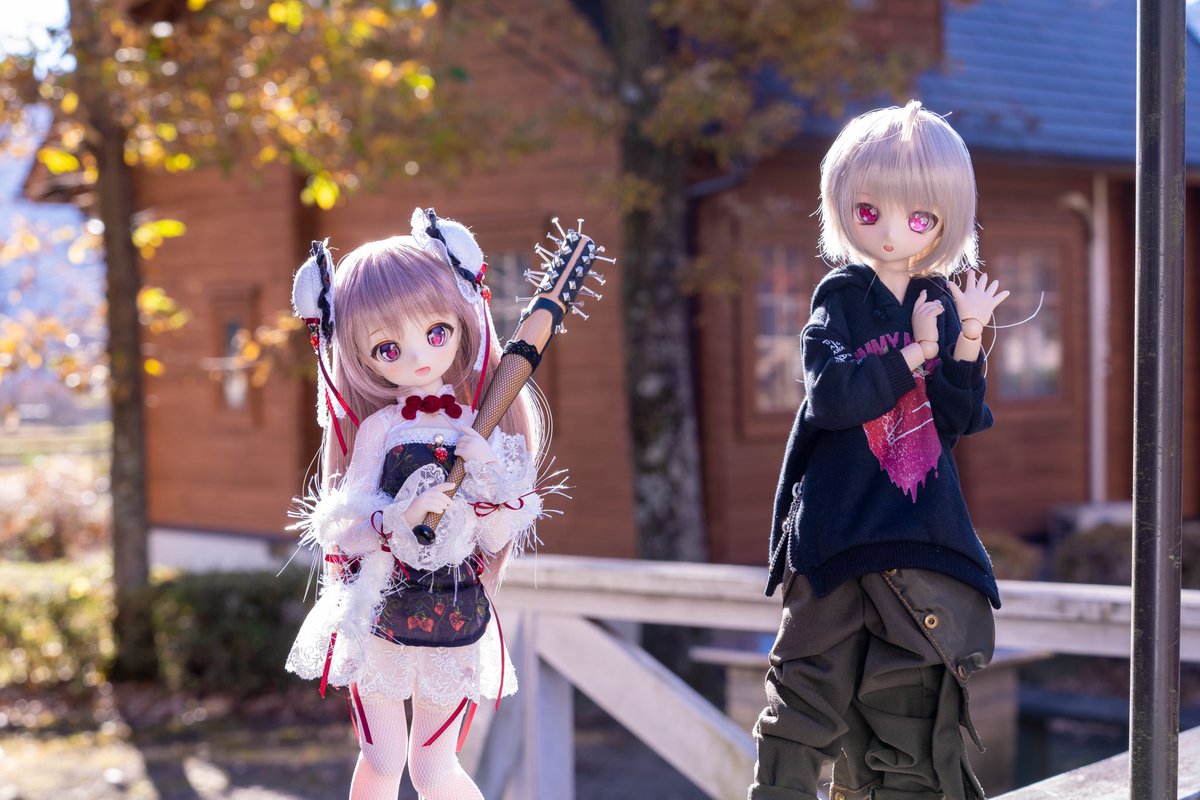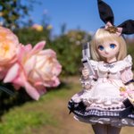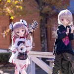 つばめさんから誕生日プレゼントでフリフリの傘いただきました、ありがとー🥳 撮影していたらつばめさんちの娘がやってきましたので、傘合わせ😁 #うちのこかわいい #MDDはいいぞ #RonshukaCouture
