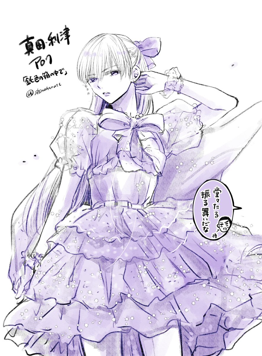 リクエスト⑤またまたお待たせしてしまい大変申し訳ありません…! 「女装でトラウマをほじくり返される俳優・真田利津アロワ」というお題でしたが描いてみたらトラウマどころか吹っ切れた利津になりました🙏久しぶりに鈍色のキャラが描けて楽しかったです!ありがとうございました。#鈍色の箱の中で twitter.com/shinoharatt/st…