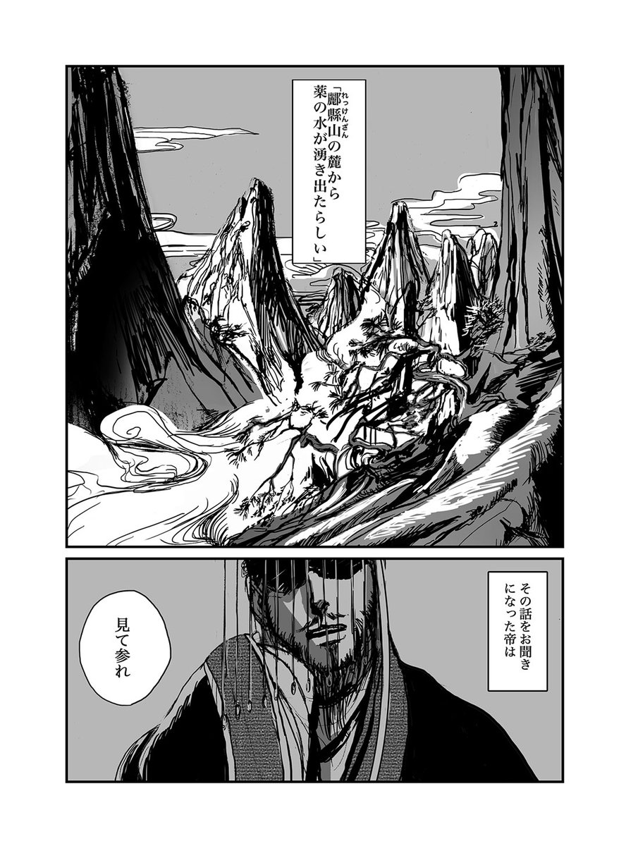 男が山で不老不死の美少年と出会う話(能楽「菊慈童」より) (1/5) #漫画が読めるハッシュタグ #創作漫画