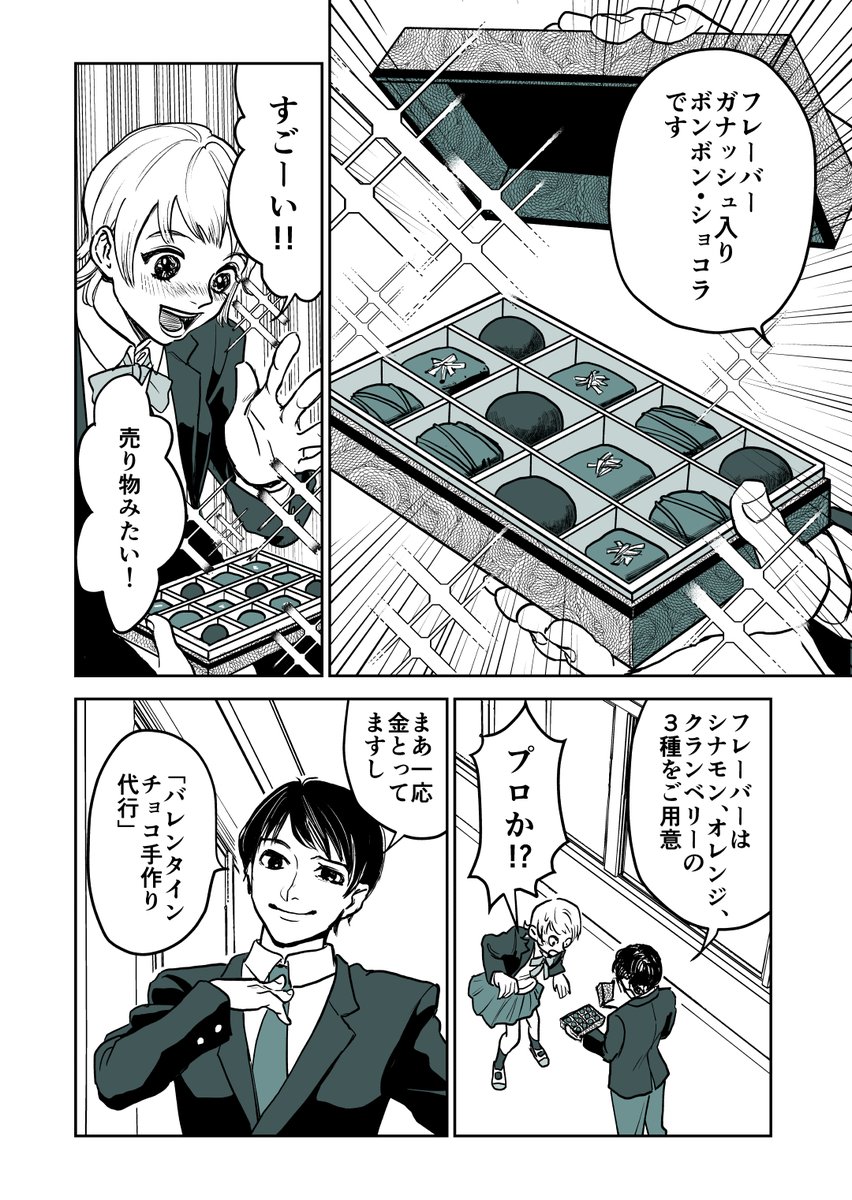 11 45 #漫画が読めるハッシュタグ #創作漫画 バレンタイン漫画(再掲) 「バレンタインチョコ手作り代行」業してる男子高校生とその先輩(1/2) 22/02/14 23:12
