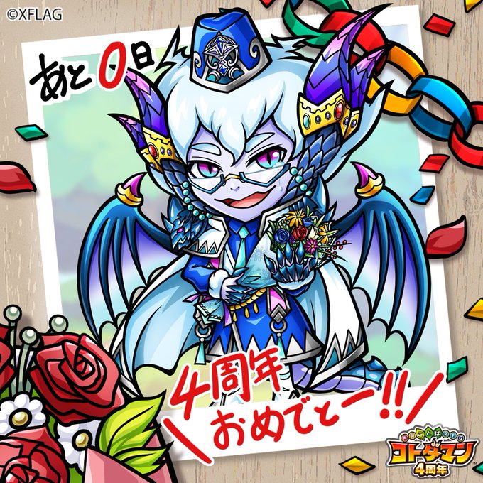 ㊗️コトダマン4周年おめでとうございます!!🎉 4周年集合絵では『ハ竜ケーン』を描きました!! よーく見るとハ竜さんの目に涙が…🥺 今後ともコトダマンをよろしくお願いします!! #4周年コトダマアート #コトダマン #コトダマン4周年