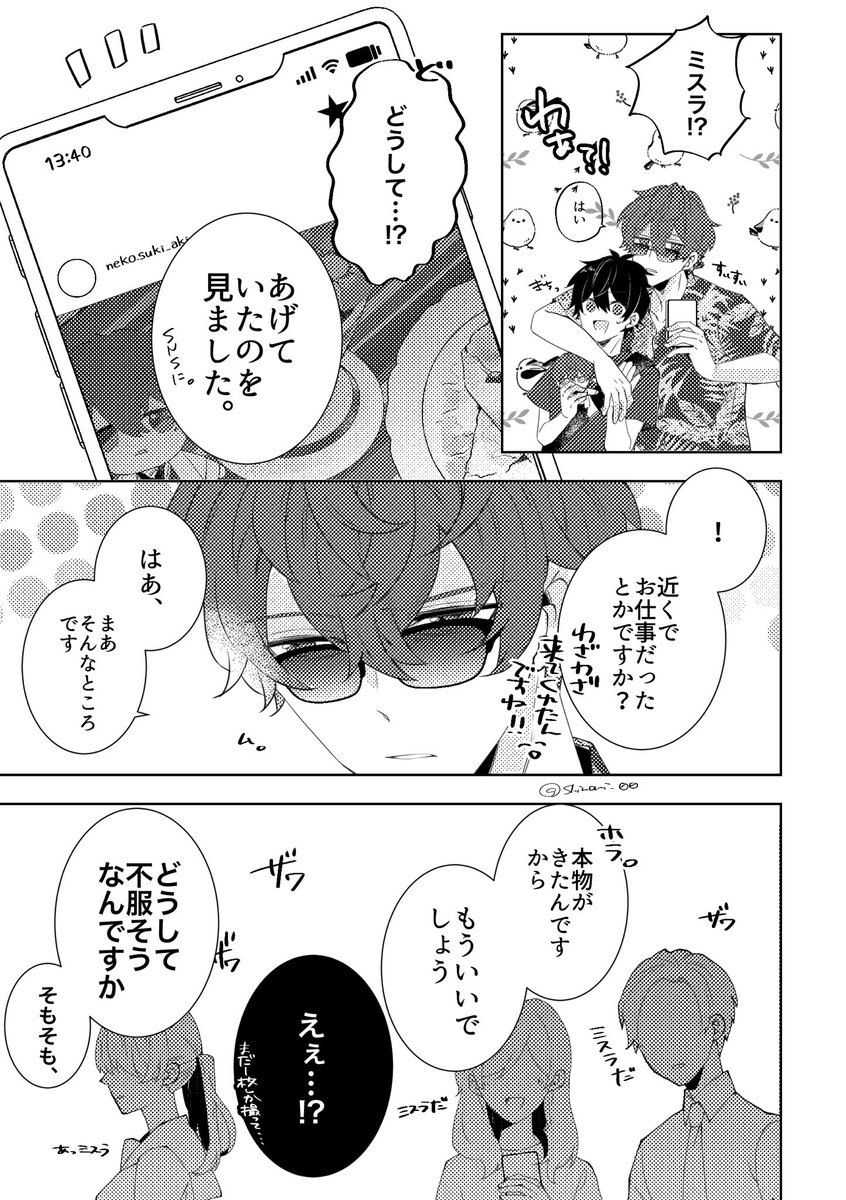 32 227 開催おめでとうございます〜!!🎉🎉🎉🥳🥳🥳 アイドルミスラ(🍎🩸)×一般人晶くんの漫画(1/2) #ねむよる2アフター 23/08/20 04:12