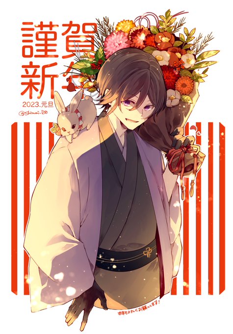 107 509 描き始め薬研くんとお花番外編。 今年もよろしくお願いします〜! 22/01/01 20:06