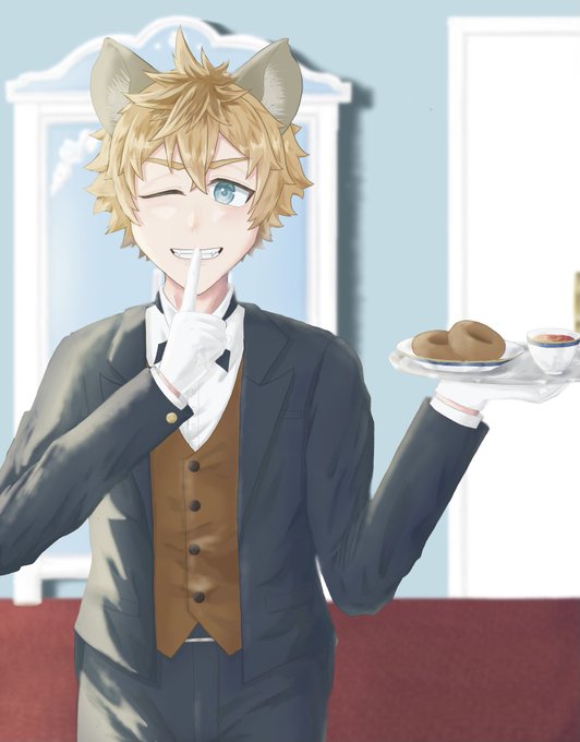 #twst_執事企画リターンズ 「特製ドーナツお持ちしました。 …ナイショっスよ?」 企画ラストにして初参加でございました!! 描いてて楽しかったです✨ タグから他の素敵な方々の作品が見られますのでぜひ!!