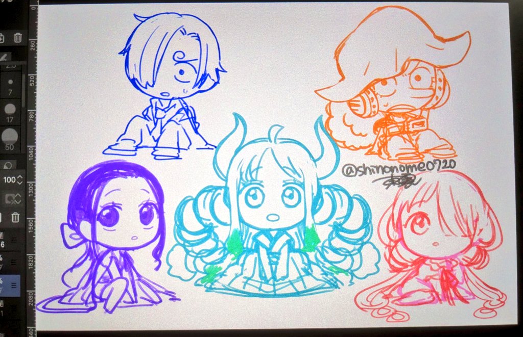ONE PIECE🏴☠赤髪海賊団 「せーの…! 「「「負け惜しみ〜!!」」」 みんなを描きたくてやっと✨🤗 ※タップ推奨 #OP_FILMRED #FILMRED文化祭 #アート部門 #ウタ