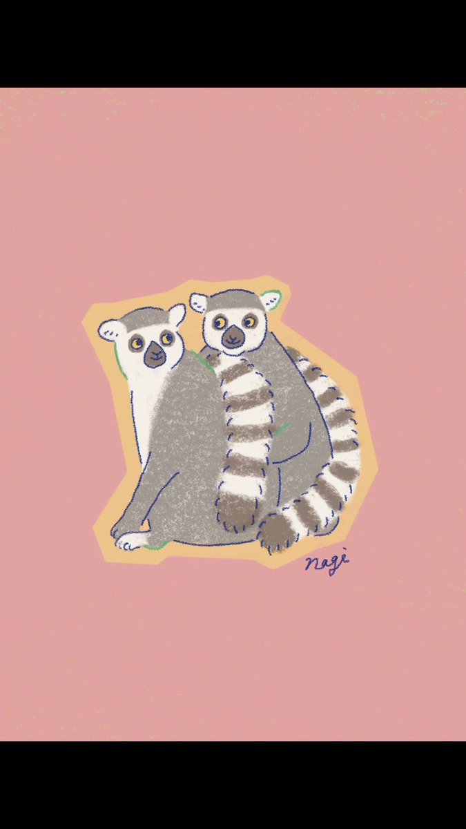仲良しのワオキツネザル🐒🐒 #イラスト #絵 #illust #illustration #art
