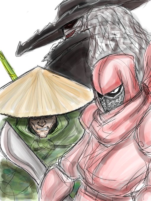 27 78 スリー・ダーティー・ニンジャボンドの三忍を描きました。 お祭り感があって、好きなエピの一つです。 #ウキヨエ #ニンジャスレイヤー 22/10/01 22:30