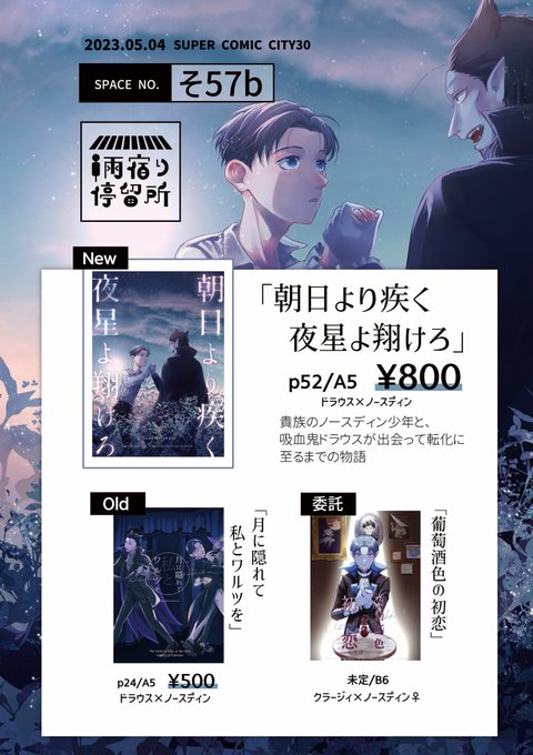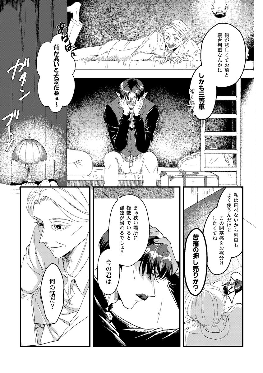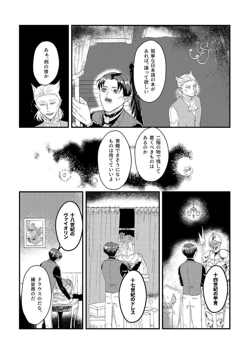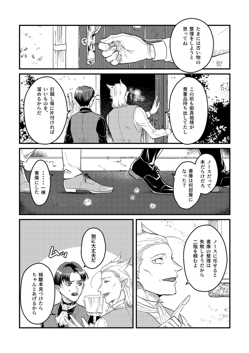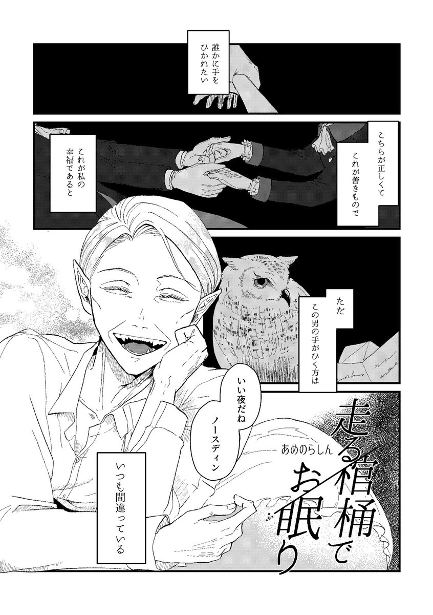 月に隠れて私とワルツを① 新刊&おまけ漫画&ペーパーでした。ここ1ヶ月半やってた原稿の正体でした。 pixiv版→ pixiv.net/artworks/10452… #0115狼薔薇アフター