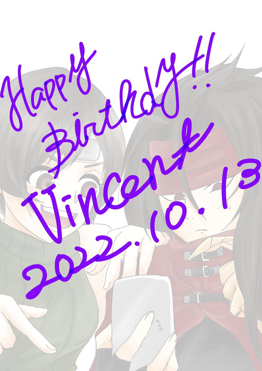 1 9 大遅刻だけどまだ10月なのでセーフ!!!!!ということでおめでとう〜!!!🎉🎊✨✨✨JKにスマホの扱い教わっててくれ… #ヴィンセント誕生祭2022 #イラスト 22/10/18 23:01