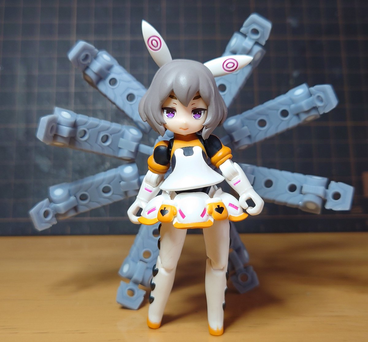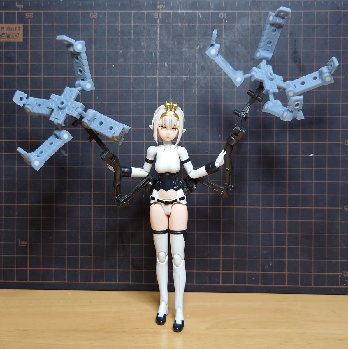 メガミデバイスに装備するとこんな感じ。エーデルワイスがもともと持ってるアームと組み合わせるといい感じ。 ちなみに蛸足モデルはマリーセレスも参考にしました。 #メガミデバイス