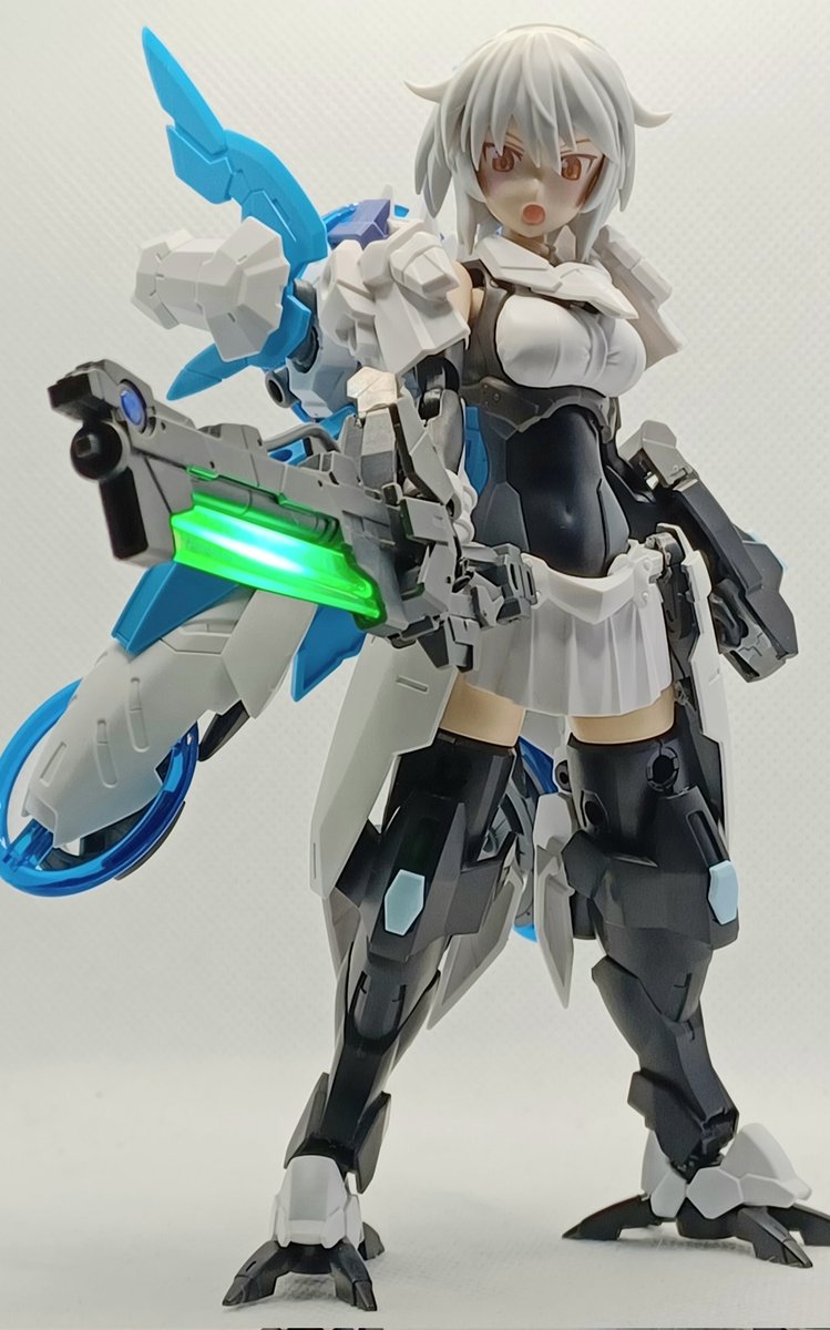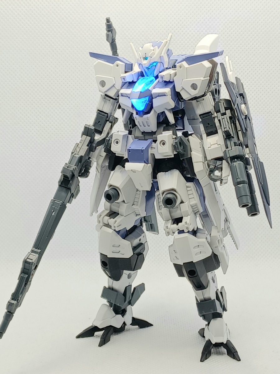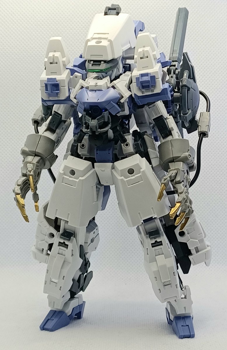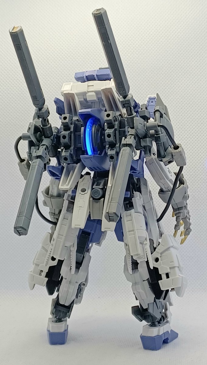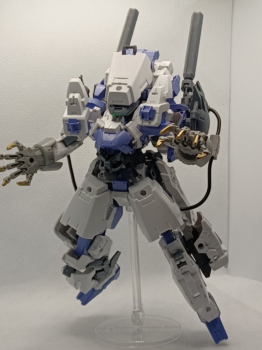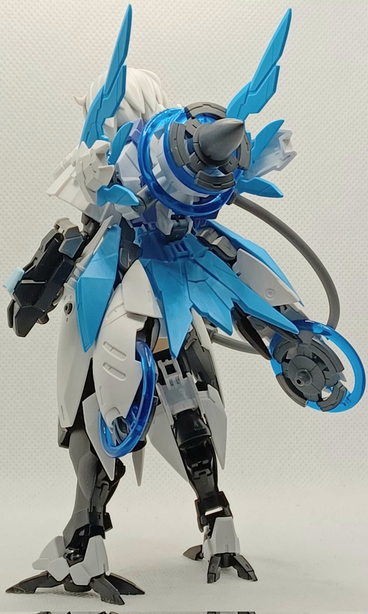 リシェッタ【グリフォン装備】 数世紀前に戦場となり廃墟と化した旧市街地にて、都市考古学調査団の護衛任務を遂行するための装備。 機動力を強化した飛行ユニットを装備しており、長時間戦闘に耐え得る為に旧式だがエネルギー効率に優れた環状炉を搭載している。 #30MS選抜オーディション #30MS