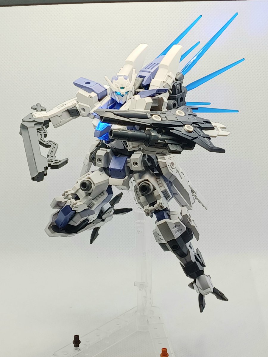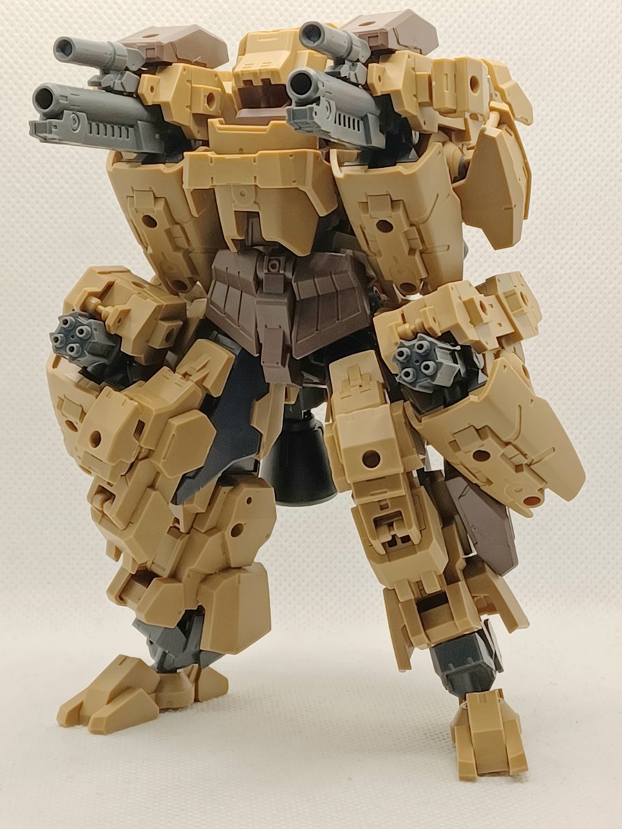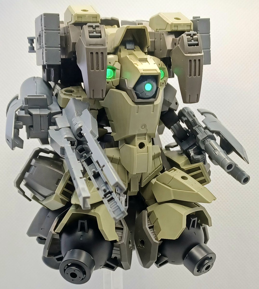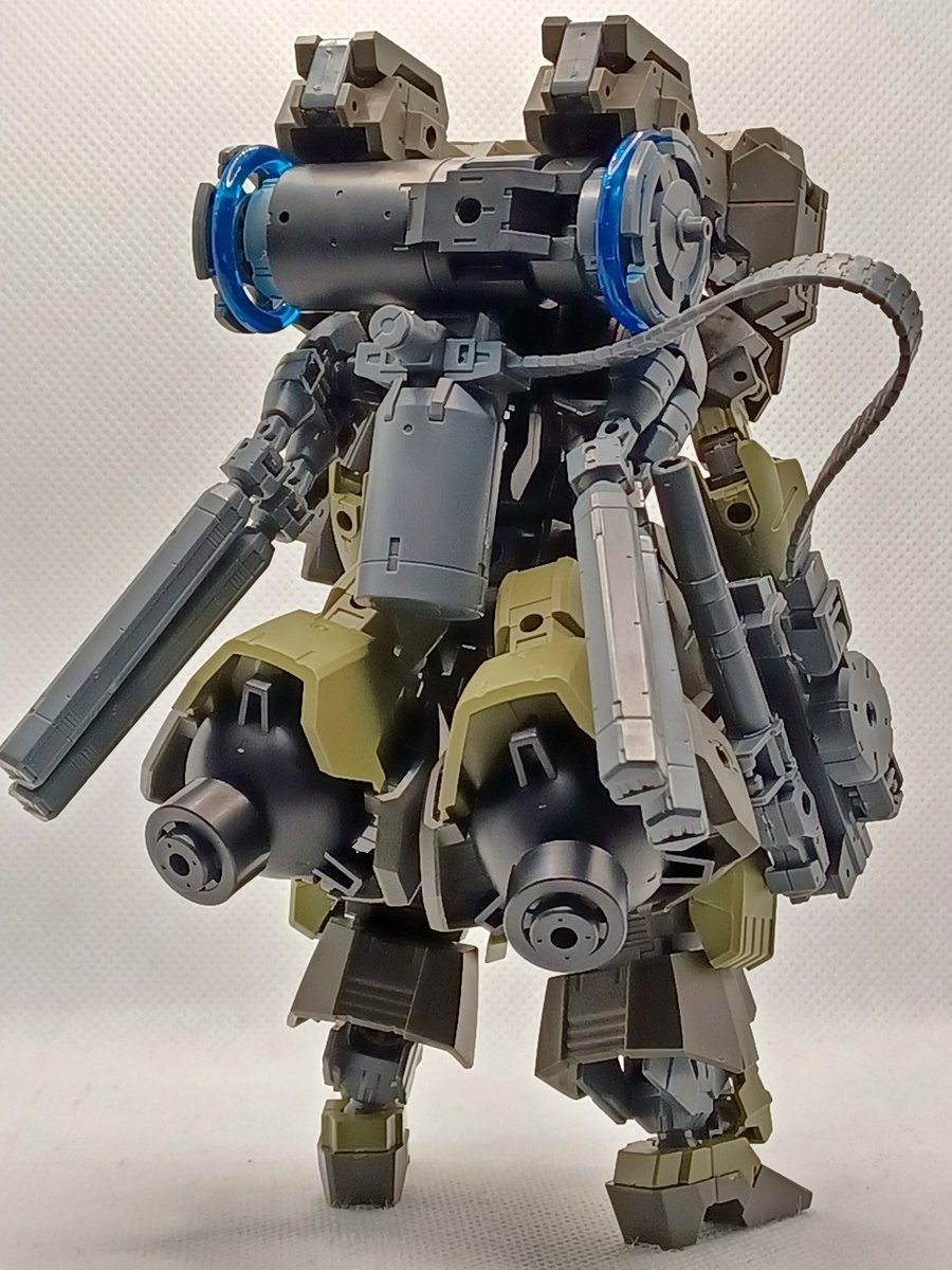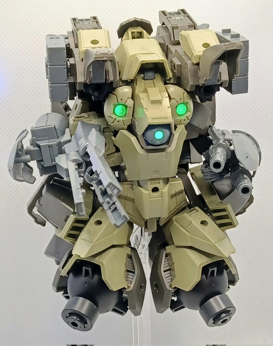 フォレスフォートレス 森林戦で活躍した無人機統括機を宇宙戦仕様に回収した機体。 全身に装甲を増設し右腕に大型レールガンを装備している他多数の火器を搭載している。 下半身をブースターユニットに換装した事で見た目よりも軽快に機動する。 #30MM宇宙戦 #30MM地球連合軍