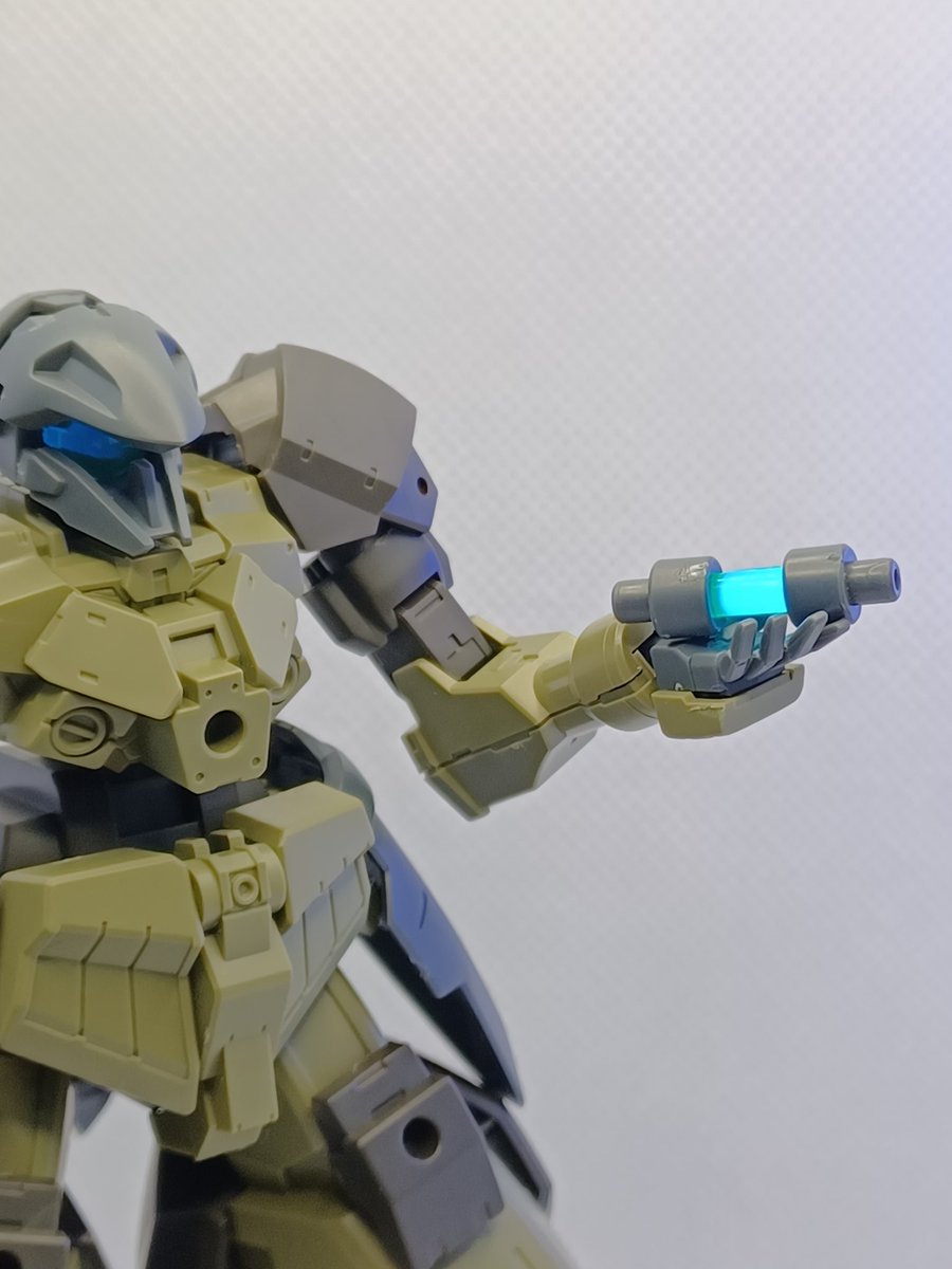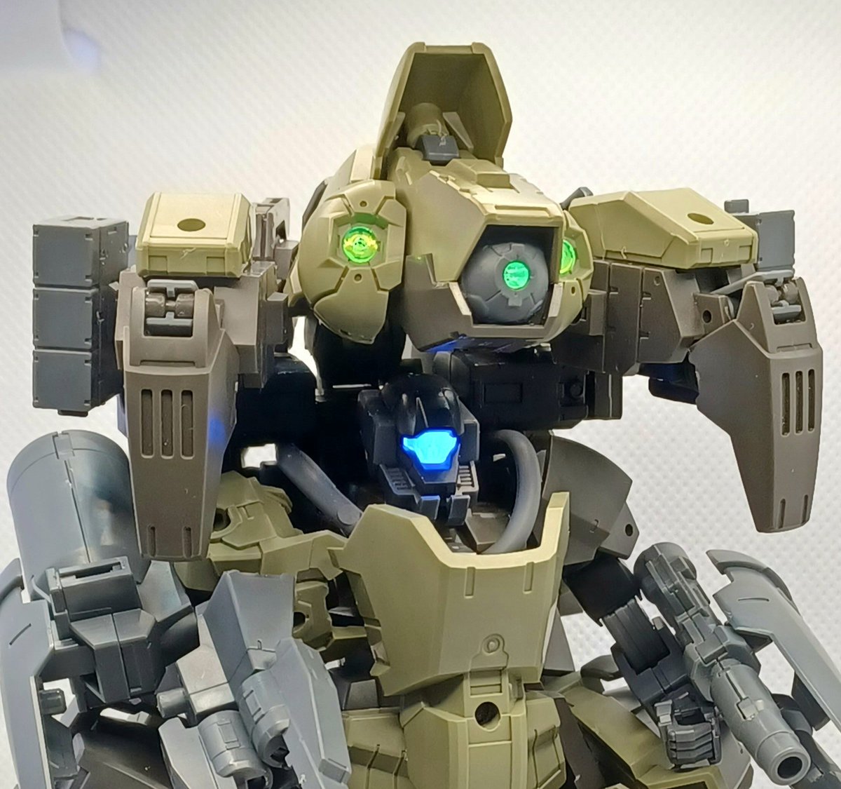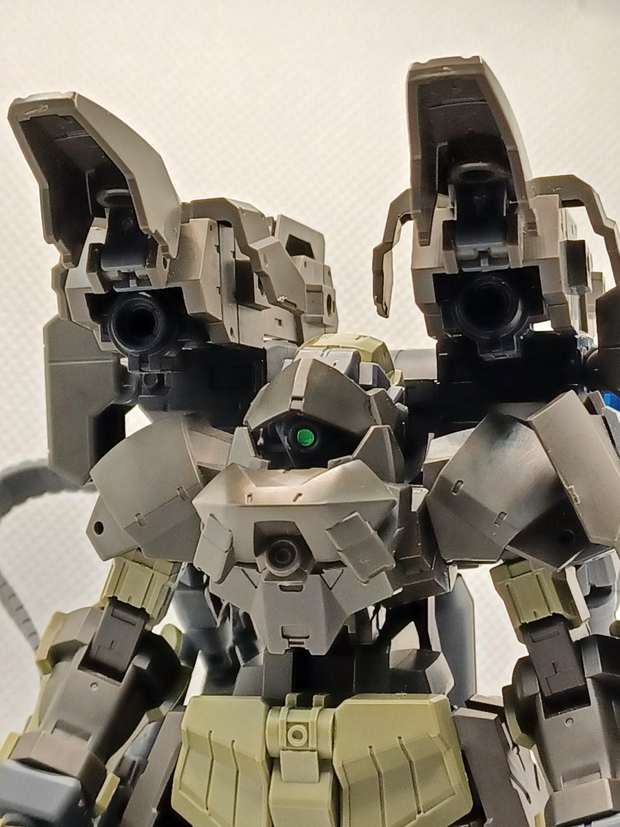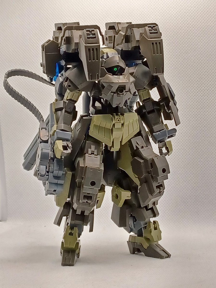 アルビオット・ブラキオン 単体の火力と防御力を追及した機体。 右腕の固定ビームライフルに加えてバックパックの大口径ビームキャノンを装備している。 活動時間延長のため環状炉とプロペラントを増設している。 #30MM森林戦 #30MM地球連合軍