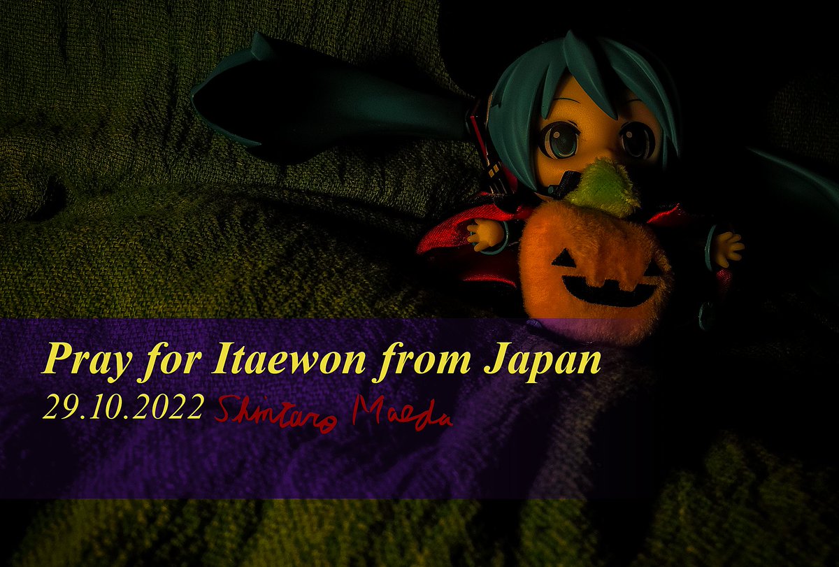 10/31【フリー】 去る29日夜にハロウィンでにぎわっていた韓国のイテウォン(梨泰院)で起きた事故で亡くなった方々の追悼で撮影・編集してInstagramに載せた一枚です。 instagram.com/p/CkYYg3drmFA/… #深夜の初音ミク撮影60分一本勝負