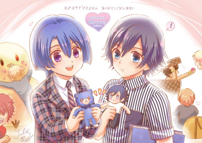 0429寒色webオンリー•エアスケブリクエスト(2) 💜💙いずみさんのリクエスト 【ぬいスター&プリキャと遊ぶの寒色ちゃん】ですーー💙💜 ふたりの幼少期を描いたは初めてですね 可愛くて楽しかった---🥰 #寒色TMHT_エアオンリー_0429