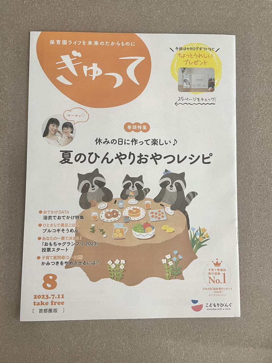 保育園で配布されているフリーペーパー『ぎゅって』8月号に、私が描いた漫画が掲載されています!✨ 幼稚園で配布されている『あんふぁん』にも掲載されているそうです! 見かけた方は、ちらっと見てもらえたら嬉しいです😊