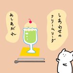 1 42 #ねこ #イラスト #しおちゃん 1日がんばりましたね✨ クリームソーダで チャージして下さいね☺️ 22/10/18 19:48
