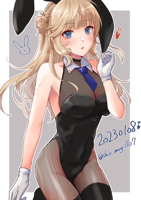 136 378 #バニーの日 #艦これ 再掲だけどバニー練習で描いたレンジャーちゃんとヴィクトリアスさん🐰🐰🐰 23/08/02 21:33