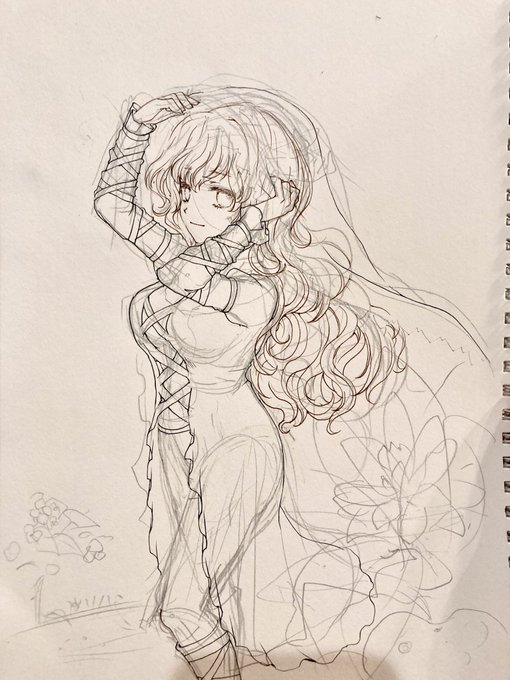 3 24 #深夜の真剣お絵描き60分一本勝負 30分で線画までしかいけなかった… 他の方みたいに色付けまで間に合う日は来るのか…!? 19/12/06 22:46