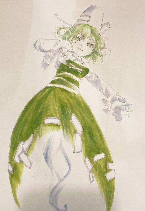 #今年も残りわずかなので今年一番伸びた絵を貼る 私にしては多い、120件近くの👍もらったやつでした。5月の東方ワンドロ。アナログで女の子を描くのが楽しい。