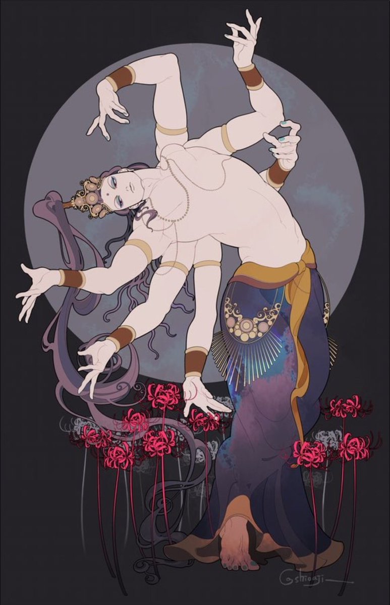今までskebで描かせて頂いた絵の一部です ・千手観音菩薩 ・月神と桜 ・帝釈天さま(ロック画面用) ・ヴァルナ神(ロック画面用)