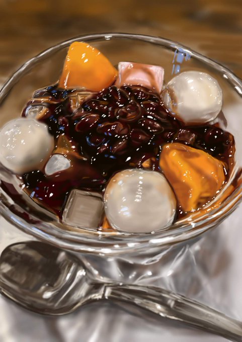 6 50 #たとえ反応が薄くてもツイッターの仕様のせいに違いないと思えばいい作品をあげまくろうぜ #イラスト 今日描いたのは大好きなあんみつ😋 23/07/04 18:13