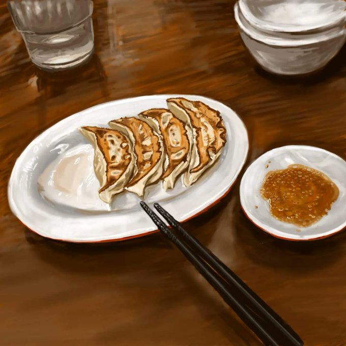#イラスト #illustration #餃子 今日はお店で食べる餃子描きました😋
