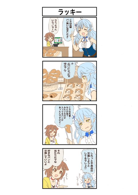 37 166 パン屋で働くころさんとパンを買いに来たラミィの4コマ #できたてころね #LamyArt 22/07/17 21:32