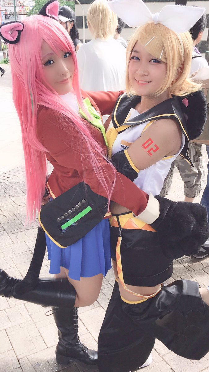 ピンクと黄色のお姫様 もにゅさんのにゃーちゃんとすぅさんのリンちゃんでハグして頂きました😍💕💕 すぅもにゅ尊い🙏💕💕 #ビビコス