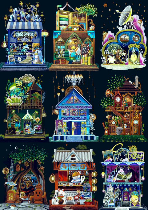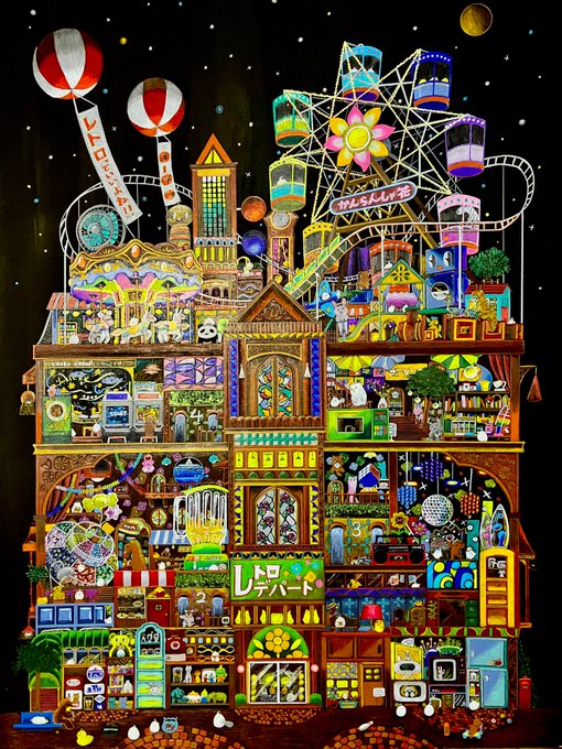 未知の惑星UFOキャッチャー店🪐 どこかの惑星からやってきた店長が経営するUFOキャッチャーのお店。 よくわからないぬいぐるみが取れる。 人気なのはドデカぬいぐるみをが取れるBIGキャッチャー。 #illustration #色鉛筆