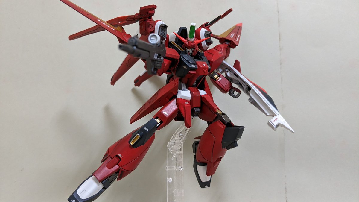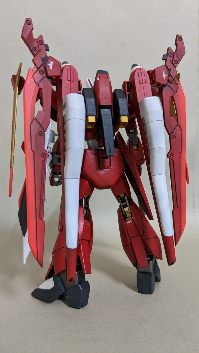 新年初全塗装はエアリアルにて シェルユニットの裏側からのと肩の赤いラインだけシール、アンテナのシャープ化と色はあまり捻らずエアブラシでさっと仕上げましたわ 今年はいくつ全塗装まで持っていけるかなぁ… #ガンプラ #ガンプラの画像貼るとRTされると聞いて