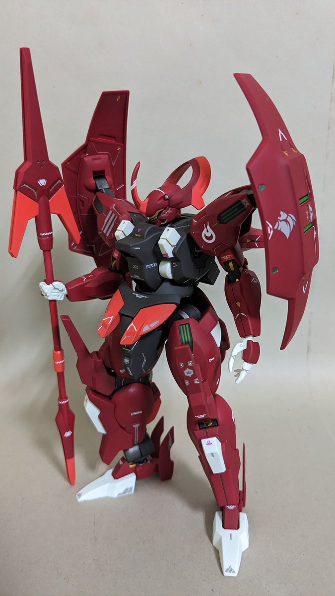 ダリルバルデ出来ましたわん 水魔女汎用デカール3をそのまま使っております 部分塗装のみで抑えようかと思いましたが赤いとこはほぼ全塗装になりました_(:3」∠)_ ドワッジ塗った時の赤とガイアカラーのスカーレット使っております あとはガンマカ金銀を随所に #ガンプラの画像貼るとRTされると聞いて